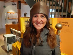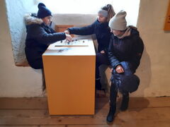 Im Rahmen des Wahlmoduls „Lebenswirklichkeiten im Mittelalter“ hatten sich nämlich eine Vielzahl von Fragen aufgetan, die hier auf oftmals sehr anschauliche und praktische Weise beantwortet wurden. So konnten wir an interaktiven Stationen hören, wie damals wohl die Musik geklungen hat oder mittelalterliche Brettspiele ausprobieren. Sogar an einem Pflug, wie er seinerzeit verwendet wurde, konnten wir uns ausprobieren - und stellten schnell fest, dass die Bauern seinerzeit tatsächlich Schwerstarbeit geleistet haben. Andere Fragen beantwortete uns Frau Marten: Wie schmeckte das Essen? Wie viele Menschen lebten auf einer Burg? Wie sah der Alltag von Männer, Frauen und Kindern aus?