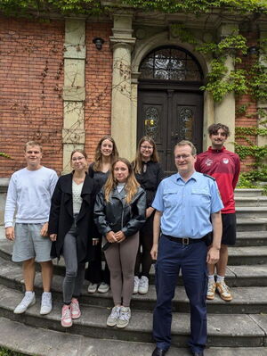 Herr Scharf vermittelte uns nicht nur einen umfassenden Überblick über die Aufgabenbereiche und die historische Entwicklung der Bundespolizei in den letzten 70 Jahren, sondern erläuterte auch detailliert die internen Strukturen und Ebenen innerhalb der Behörde – von der lokalen Dienststelle bis hin zu bundesweiten Koordinierungsstellen.