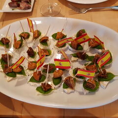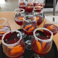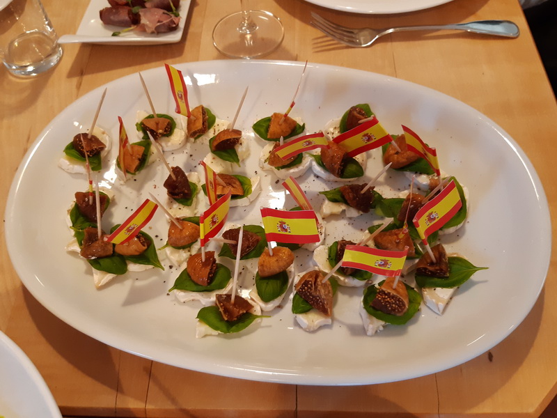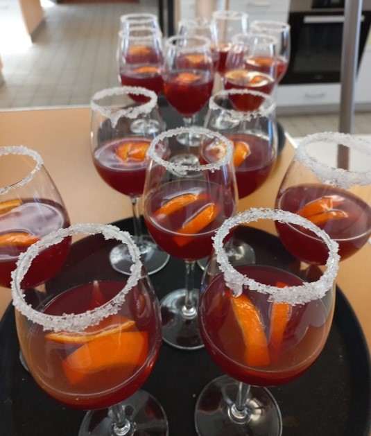 Nach einer erfrischenden Sangria als Begrüßungsgetränk und einer kurzen Anfangsbesprechung ging es schon los mit der Zubereitung der spanischen Köstlichkeiten. Die Schüler/-innen bereiteten unter anderem Tapas wie Oliven, Datteln im Speckmantel, Feigen- Ziegenkäsespieße und weitere Leckereien unter Hilfestellung der Projektmitglieder zu. Des Weiteren machten die Teilnehmer eine "Tarta de Santiago", einen typischen Mandelkuchen. Anschließend wurden die zubereiteten Speisen zusammen verkostet.