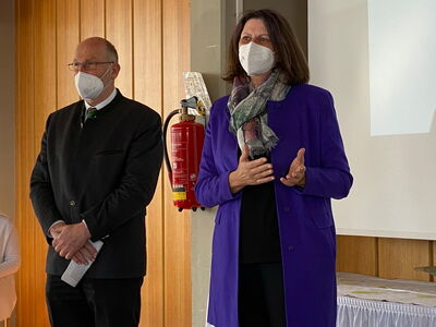 Neben den Schülerinnen und Schülern zeigte sich auch Landtagspräsidentin Ilse Aigner, die sich die Gelegenheit, am Zeitzeugengespräch teilzunehmen, nicht nehmen ließ, tief bewegt und betonte in ihrem Grußwort, die Aufgabe aller Menschen sei es, sicherzustellen, dass sich Derartiges nie wieder wiederholt.