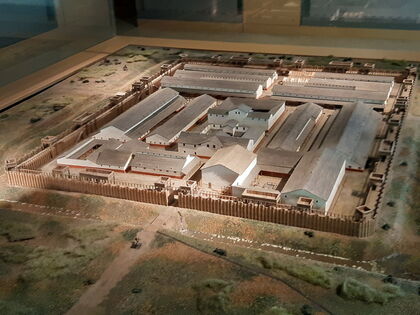 Im Jahre 15 vor Christus eroberten die Römer schließlich das Alpenvorland, von diesem Tag an war nur noch die verfallende Stadtmauer vorhanden. Als wir uns den Römern widmeten, konnten wir eine Minitatur-Kaserne betrachten. Diese konnte aufgrund einer Vielzahl an Ausgrabungsfunden nachgebaut werden. Hier konnte man schließlich den Aufbau der Häuser und Kasernen innerhalb des Schutzwalles betrachten. Auch die damals vorhandenen Lebensmittel, Werkzeuge und Waffen konnten rekonstruiert werden, wobei erklärt wurde, dass die Römer sehr viel an Werkzeuge und Waffen übernommen hatten. Eines der zwei größten Highlighte unseres Besuches war die Ansicht einer Rüstung und des Schutzschildes der römischen Soldaten. Die Rüstung erwies sich als sehr schwer, da auch ein Kettenhemd zum Einsatz kam, und der Schutzschild bestand aus Holz und einem Eisenanteil in der Mitte, womit der Soldat vor Angriffen geschützt wurde. Die Märsche der Soldaten erstreckten sich über Wochen, wobei die Rüstung diese, wie man sich vorstellen kann, sehr erschwerte. Bei diesen Märschen waren die römischen Soldaten allerdings versichert und erhielten eine Zahlung.