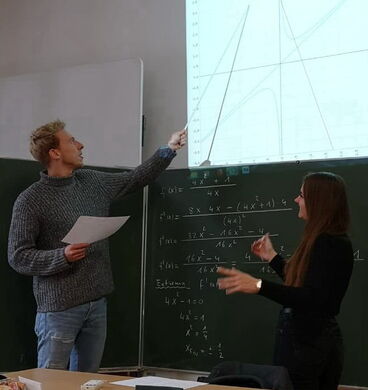 An erster Stelle steht in Mathematik unsere Teamarbeit. So werden Gruppenarbeiten und Präsentationen gemeinsam vor der Klasse präsentiert und diskutiert, welches gut zum Verständnis des Lernstoffes beiträgt.